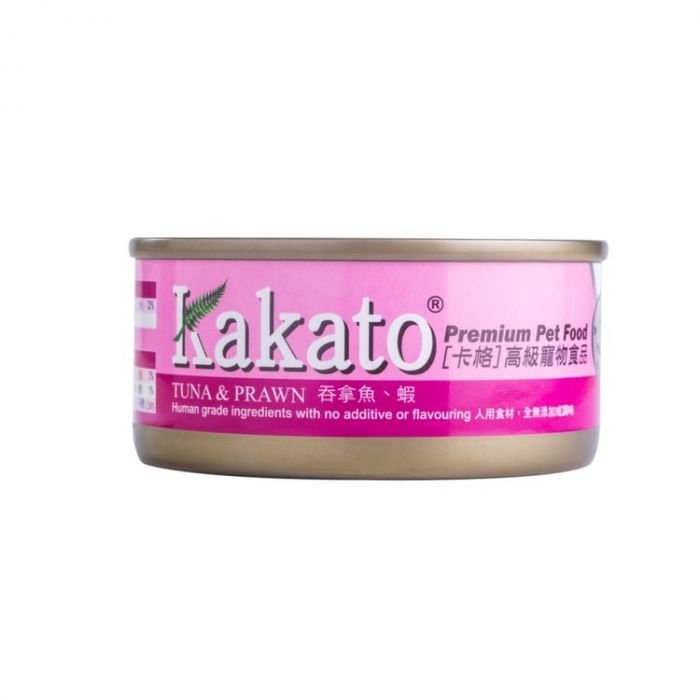 Kakato 吞拿魚蝦罐頭,嚴選優質肉類,保證絕無添加任何無必要的成份,保證閣下的愛寵得到健康快樂的生活。