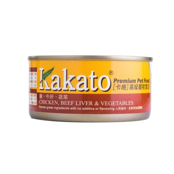 Kakato 雞肉牛肝蔬菜罐頭,嚴選優質肉類,保證絕無添加任何無必要的成份,保證閣下的愛寵得到健康快樂的生活。